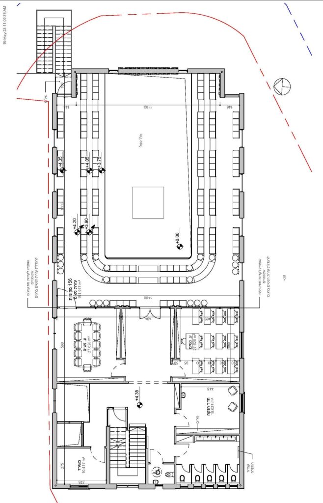 In consultation with our architect/interior designer, we are in the process of selecting the internal furnishings (shtender/benches) for the men and women’s sections (Kibbutz Lavi), and designing the Aron Kodesh and mechitza.  The shtender/benches and the mechitza will be designed to complement the Aron.